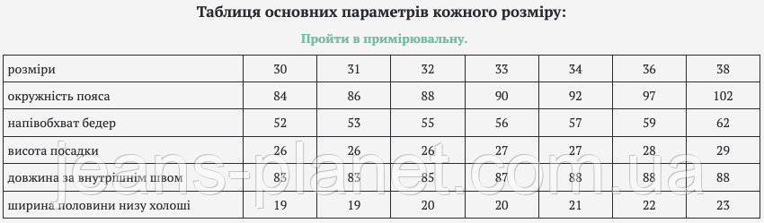 - Більш детальну інформацію про товар і про те, як правильно визначити свій розмір, дивіться на нашому сайті Jeans Planet.