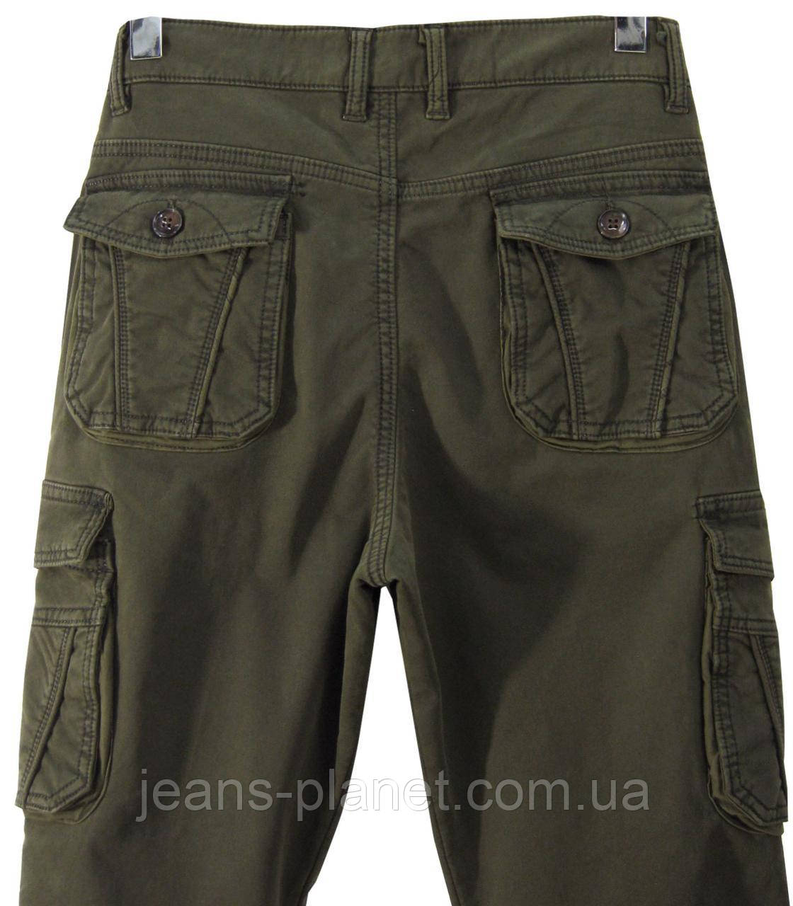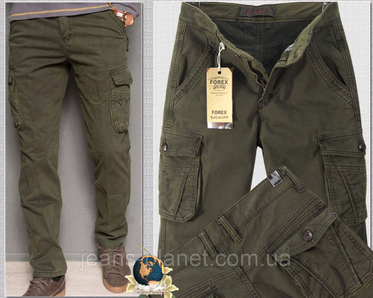 Джинси чоловічі утеплені карго з накладними кишенями, зелений хакі 30-й розмір