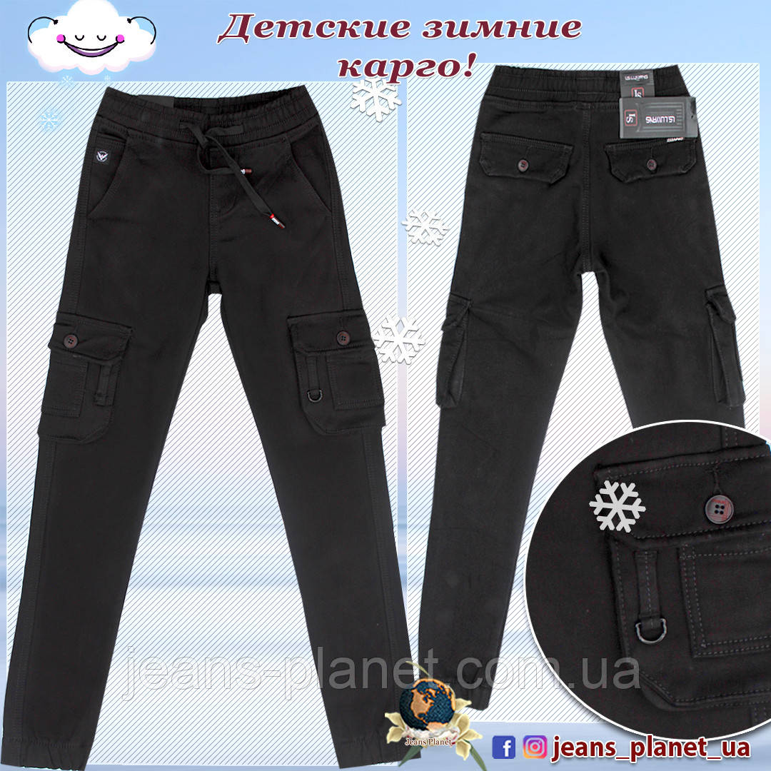 Модні утеплені джинси карго на хлопчика підлітка чорного кольору
