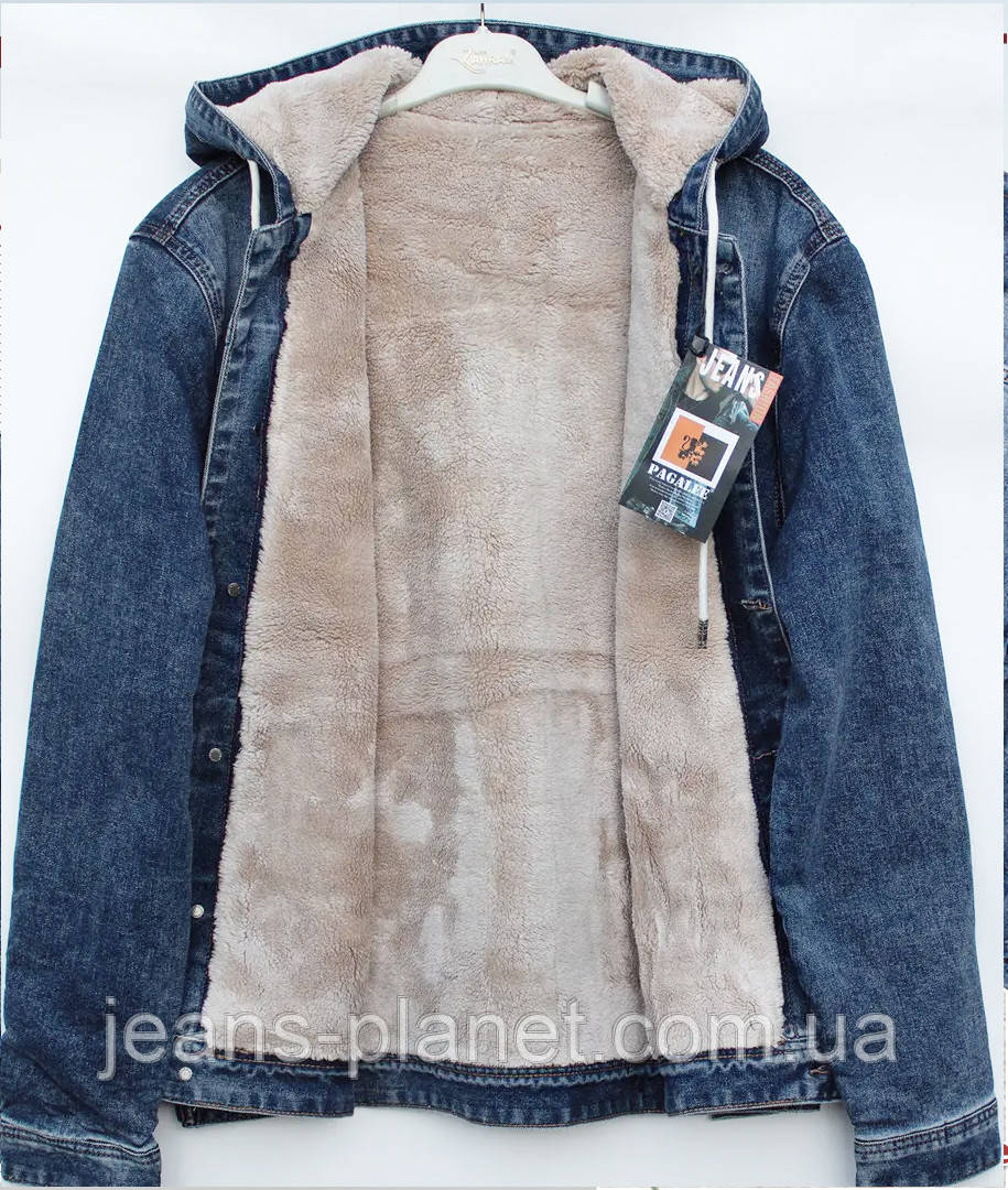 Куртка чоловіча джинсова утеплена з капюшоном синього кольору бренд Pagalee