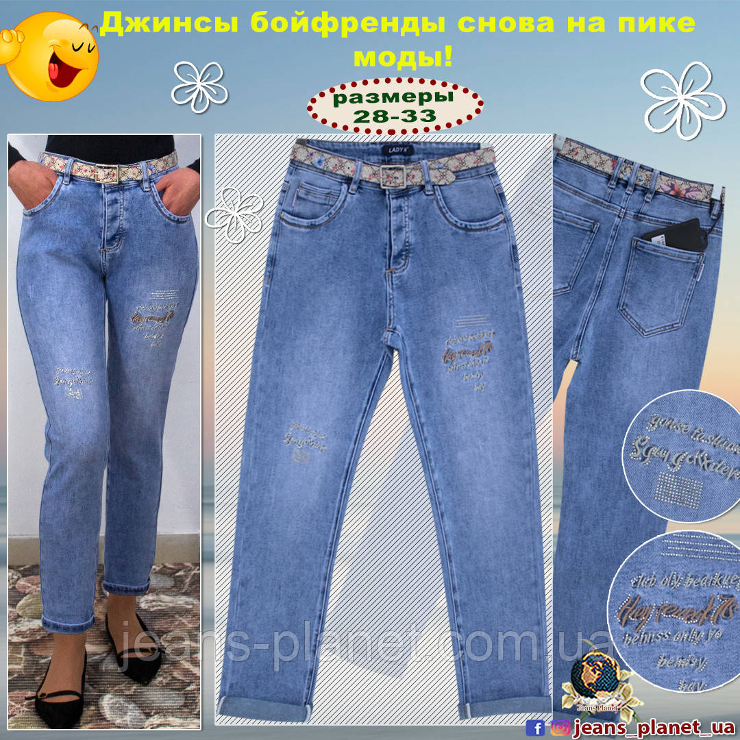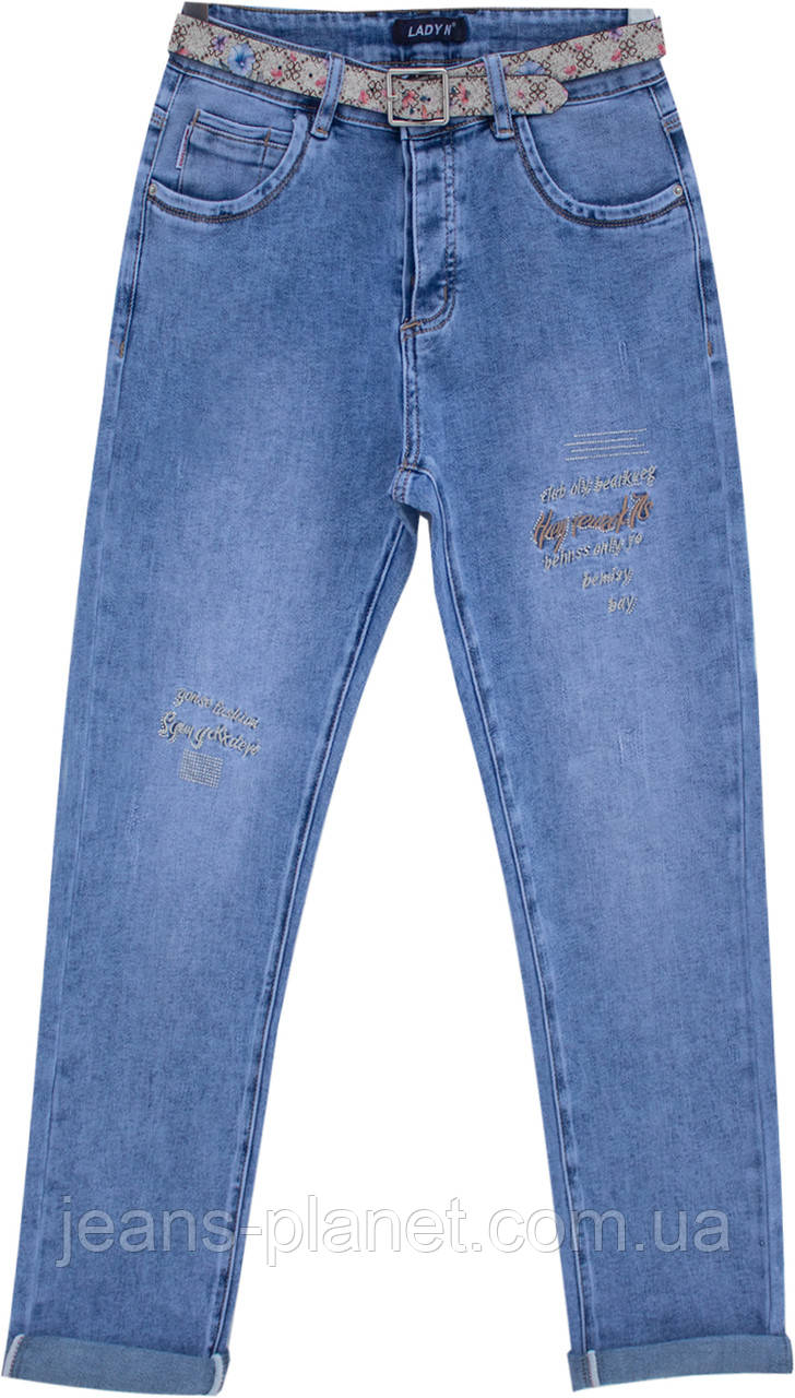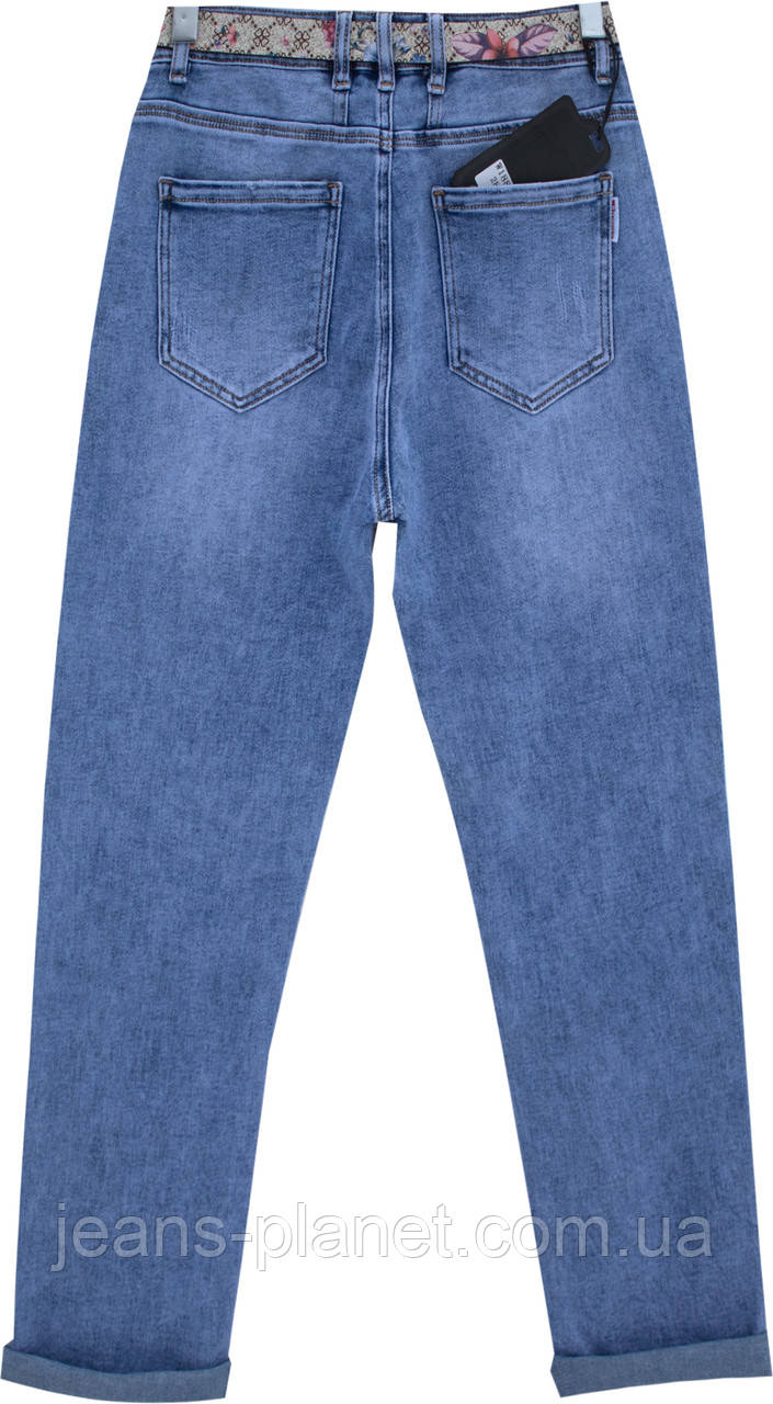 Джинси жіночі бойфренди на ґудзиках із ременем і вишивкою