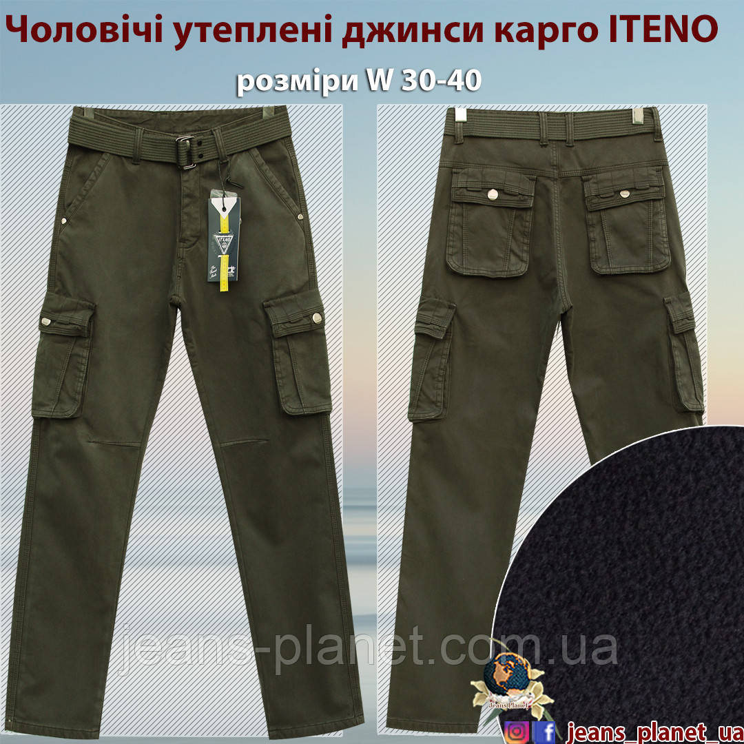 - Новинка зимової колекції! Відомий виробник ITENO Jeans порадував у цьому сезоні любителів стилю карго новим утепленим варіантом. Та ж модель, в традиційно популярному кольорі хакі, пошита з якісного котону, з невеликим додаванням(3%) еластану, утепленого дуже м'якою, приємною до тіла байкою європейського зразка.