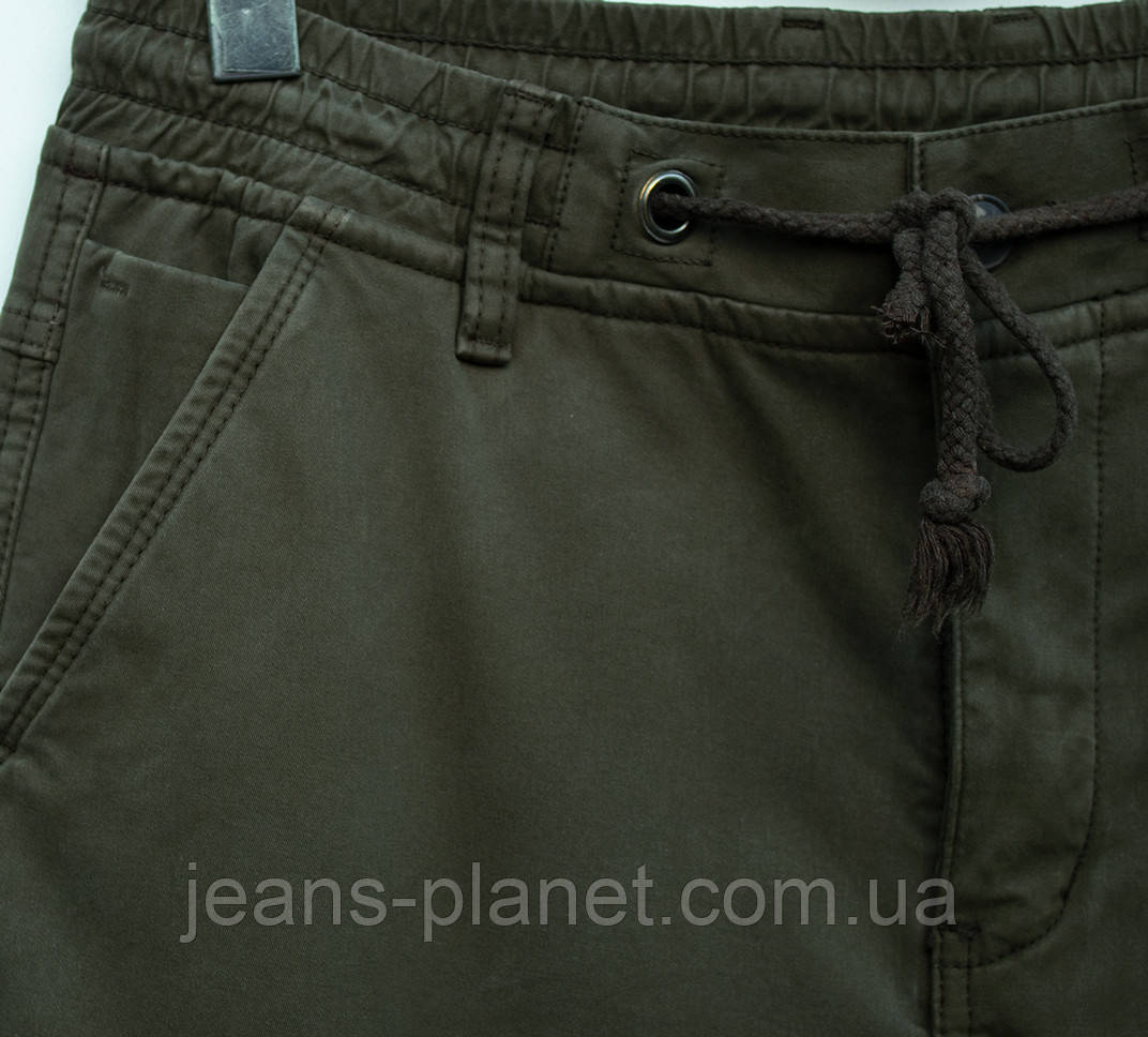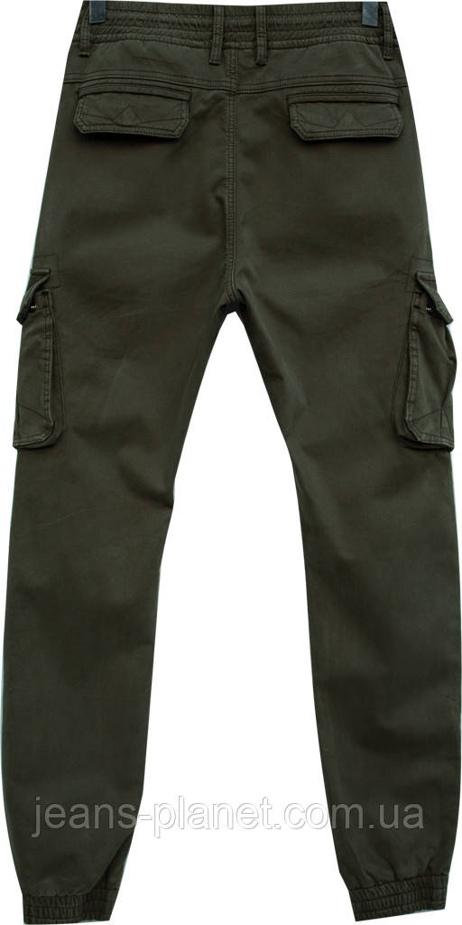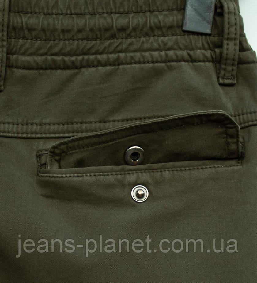 - Модні, практичні утеплені чоловічі джинси джогери кольору хакі, з накладними кишенями, пояс на резинці з куліскою, низ — манжет на резинці.
