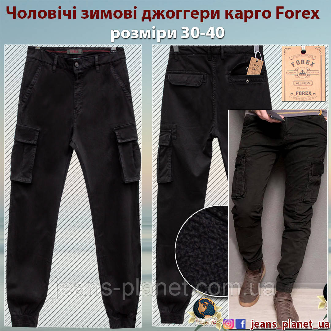 Чоловічі утеплені джинси джоггери карго на манжеті резинці Forex