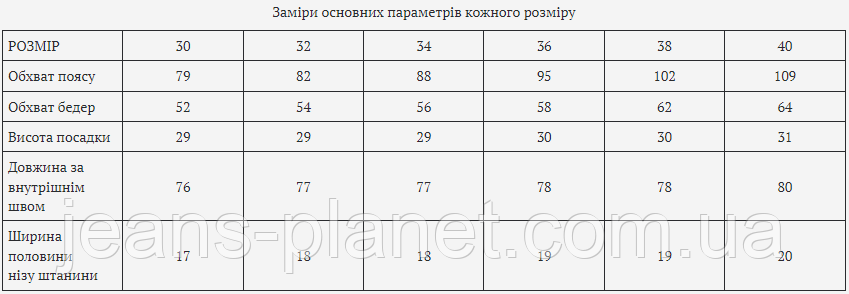 - Обмін і повернення можливий! Докладна інформація про товар і про те, як правильно визначити свій розмір, дивіться на нашому сайті Jeans Planet.