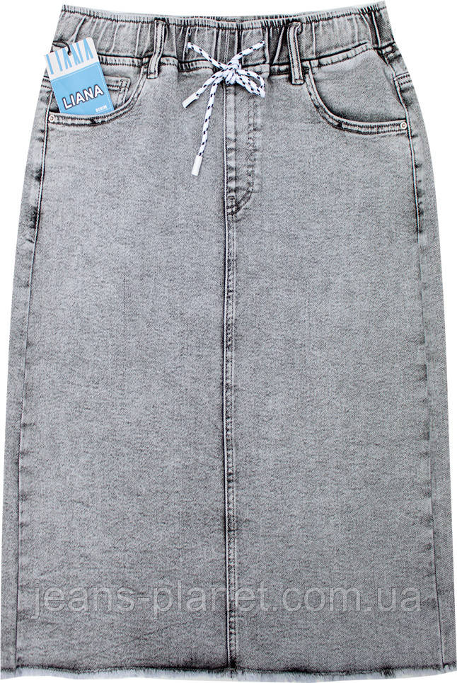 Джинсова спідниця довжина 68 см пояс на резинці світло-сірого кольору