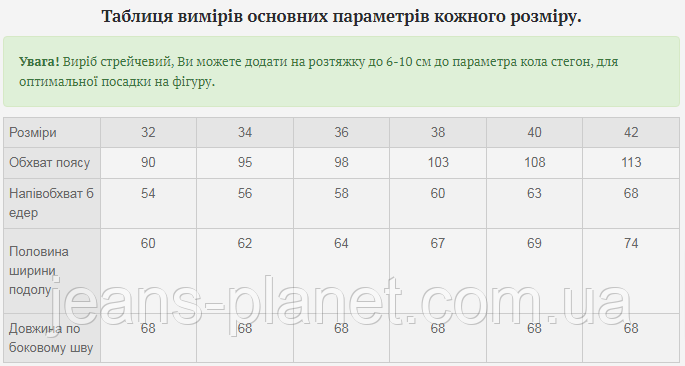 - Розмірний ряд 42 — на обхват бедер до 140 см!