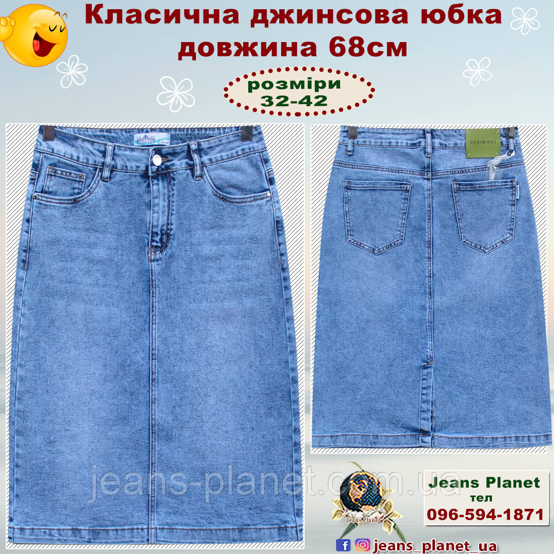 - Елегантна джинсова спідниця олівець з м'якого стрейчевого котону блакитного кольору класичноі довжини 68 см.