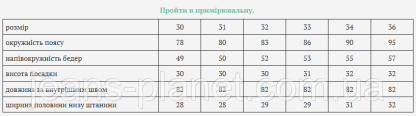 | розмір | 30 | 31 | 32 | 33 | 34 | 36 |