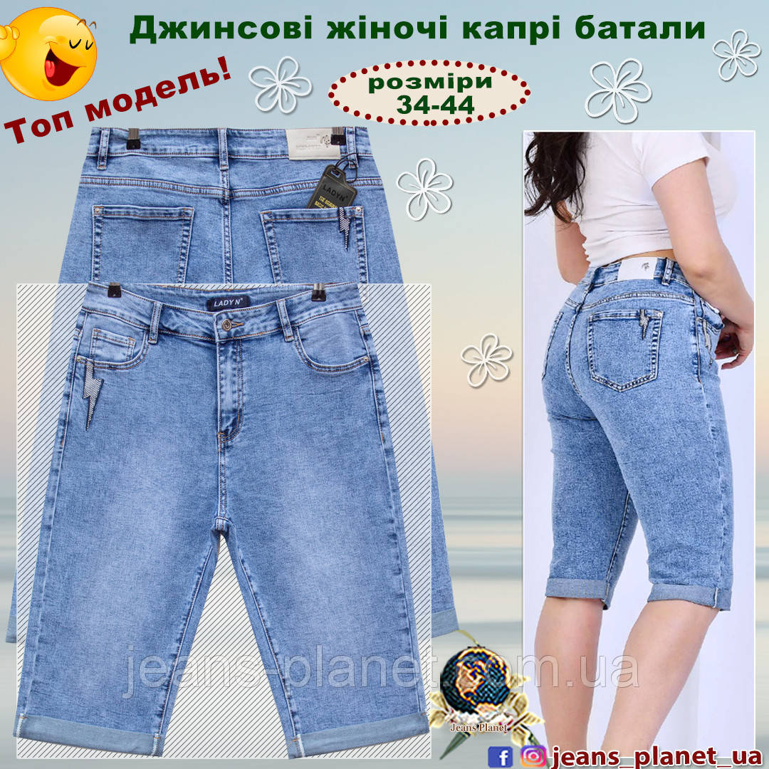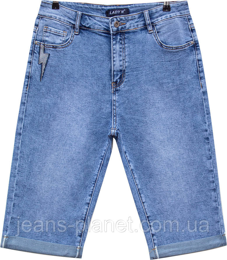 - Элегантные джинсовые капри длиною ниже колена голубого цвета.